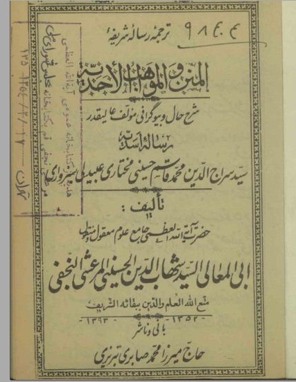 مؤلف : سید سراج الدین محمد قاسم حسینی مختاری عبیدلی سبزواری